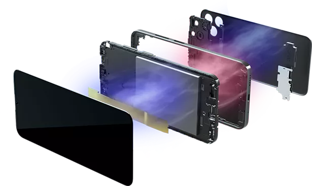 Самая передовая технология многослойного покрытия. 8 слоёв нано-оптического покрытия создаёт неповторимый градиент. Смартфон будто переливается на свету.