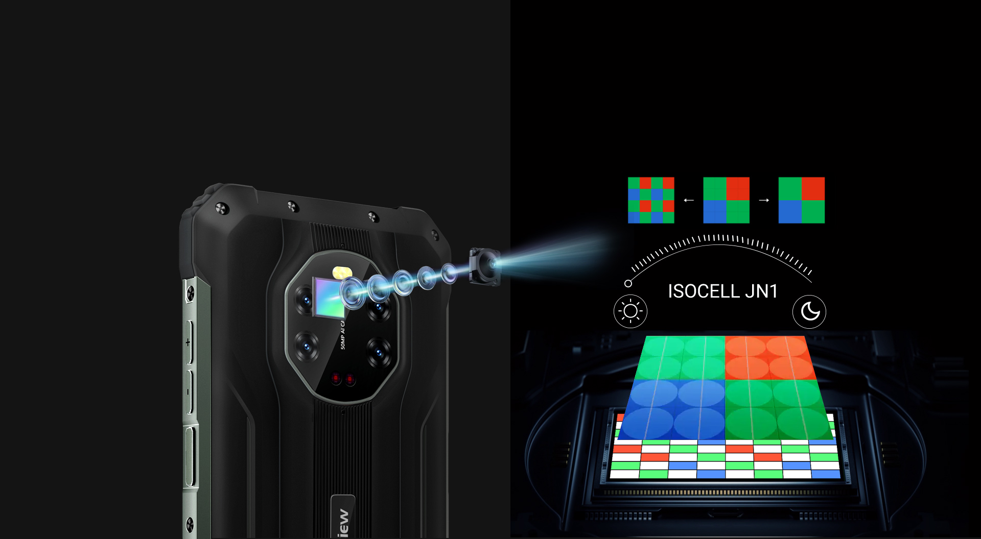 В камере Blackview BL8800 установлен сенсор ISOCELL JN1 50Мп с повышенной светочувствительностью и улучшенной цветопередачей. Запечатлейте кадр в точности как видит Ваш глаз с возможностью приближения и высокой детализацией.