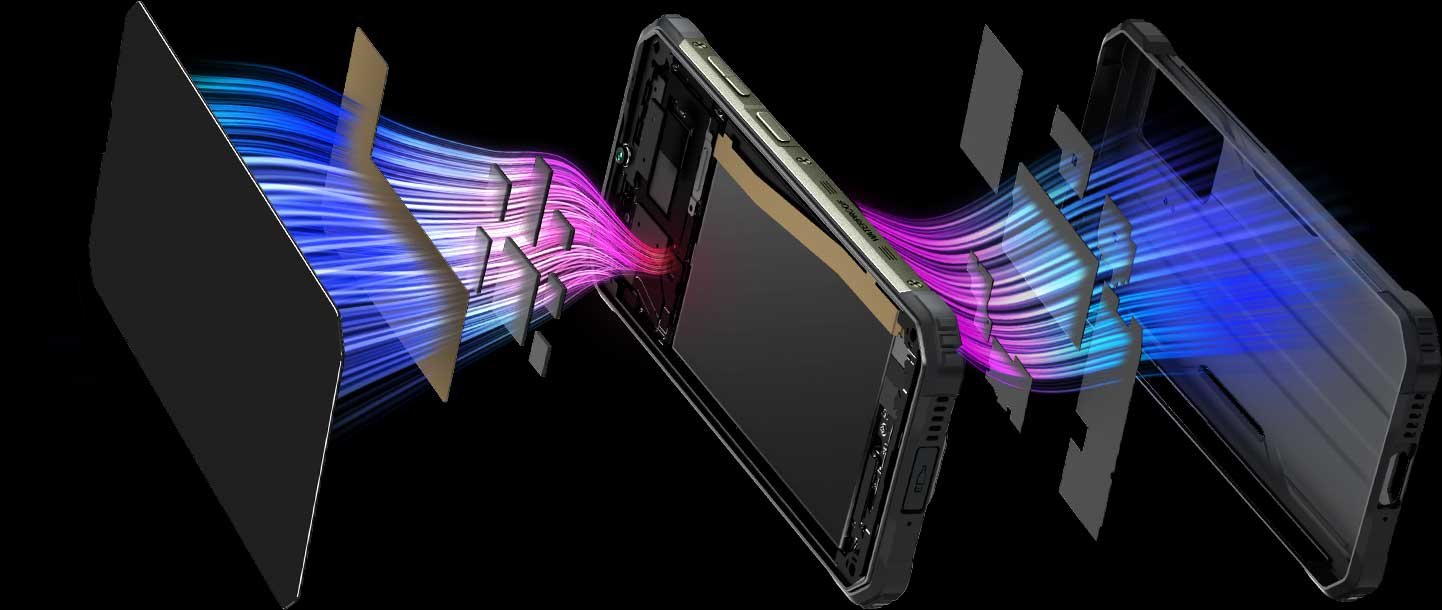 В Blackview BV9200 инженеры установили передовую систему охлаждения на основе графита и медных трубок, которые снизили среднюю температуру процессора на 10°C и на 15% лучше рассеивают тепло. Игры, стримы в течение длительного времени теперь не вызывают дискомфорта из-за перегрева.