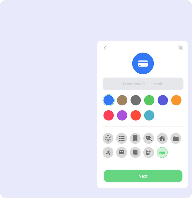 Добавьте приложения, которые Вы желаете использовать во время медитации, не включенные в данный список будут заблокированы, пока режим активен.